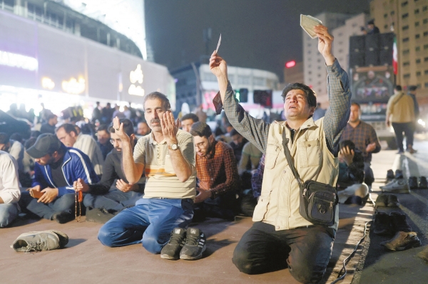 5月19日,在伊朗首都德黑兰,民众为伊朗总统莱希祈祷。新华社发