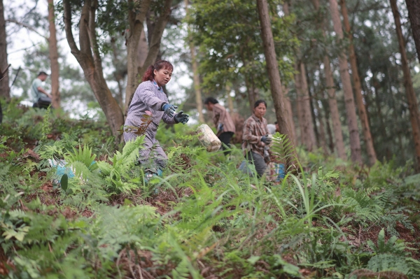 5月21日,通道侗族自治县地连林场林下中药材种植基地,农户忙着种植灵芝。