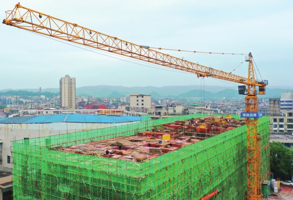 5月22日,嘉禾县第五中学“徐特立项目”工地建设正酣。该项目是省级重点民生实事项目,自去年11月开工以来,工程项目部积极推进项目建设进度,预计今年8月建成并投入使用。黄春涛 摄(湖南图片库)