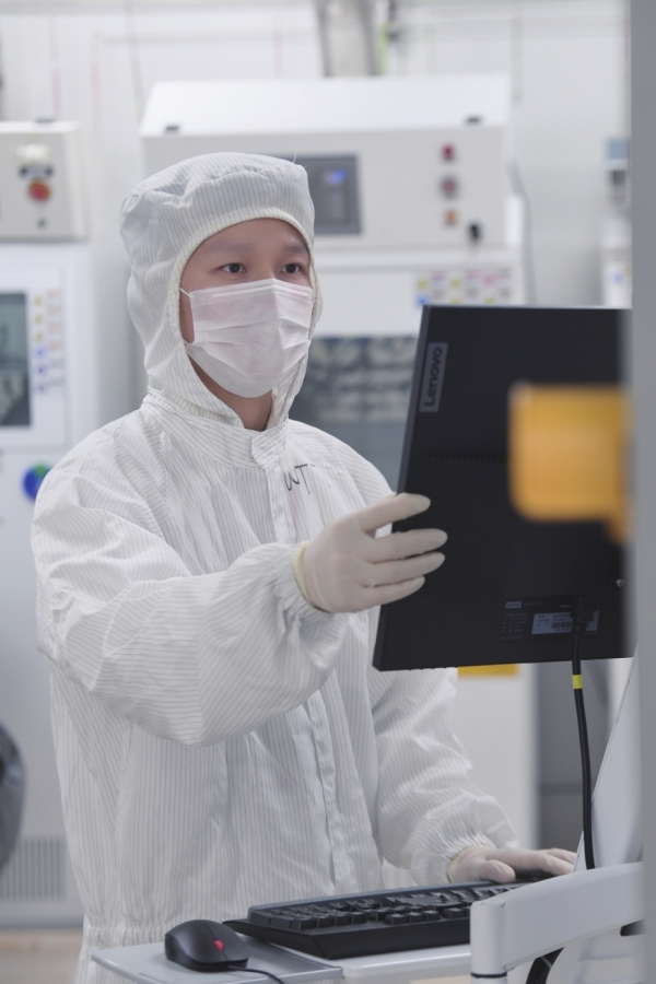 从净化间出来,石磊脱下已穿了几个小时的净化服。他换回干净清爽的白衬衣,走在回办公工位的路上,步履匆匆,一身朝气……