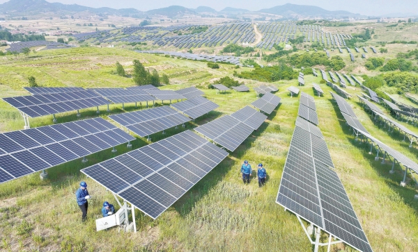 5月22日,第七届中国(日照)新闻摄影周暨“共同谱写中国式现代化日照篇章”全国百家媒体聚焦日照新闻摄影采访活动开幕,来自全国新闻界的媒体人,以各自的视角聚焦这座海滨城市的人文之美和生态之美。图为当日,山东省日照市东港区三庄镇90MV集中式农光互补扶贫电站,工作人员巡检光伏发电设施。湖南日报全媒体记者 辜鹏博 摄