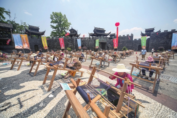 5月23日,选手在进行土家族织锦技艺比赛。当天,首届“乡村工匠·锦织龙山”土家族织锦技艺赛在龙山县苗儿滩镇惹巴拉景区进行。比赛旨在提高土家织锦影响力,为土家织锦传承、传播、创新注入新的活力。 曾祥辉 摄(湖南图片库)