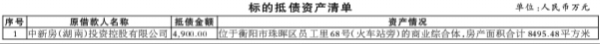 本次拟处置的资产为中新房(湖南)投资控股有限公司抵债资产(以下简称“标的资产”)。截至2024年5月1日(处置基准日),法院裁定标的抵债资产抵债金额为4,900.00万元。