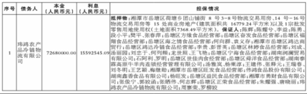 中国中信金融资产管理股份有限公司湖南省分公司拥有对玮鸿农产品冷链物流有限公司及相关担保人等1户不良债权资产,拟进行处置,现予以公告。