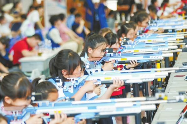 5月25日,选手参加女子10米激光步枪比赛。当天,“奔跑吧·少年”2024年长沙市青少年“快乐之星”U系列射击(激光枪)分站赛第一站在长沙市雨花区吉联第三小学开赛,吸引了41支代表队298名运动员参赛。