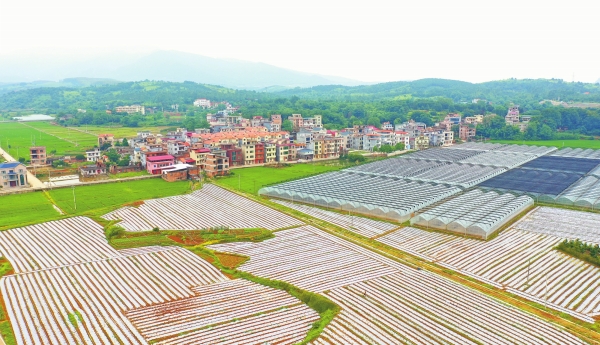 5月28日,嘉禾县晋屏镇下车村,田园绿郁、大棚成片,勾勒出一幅生态美、产业兴的现代新农村画卷。近年,当地依托独特的地理优势,发展智慧农业,打造粤港澳菜篮子蔬菜基地,带动了农旅产业发展,实现经济增收、村民致富。