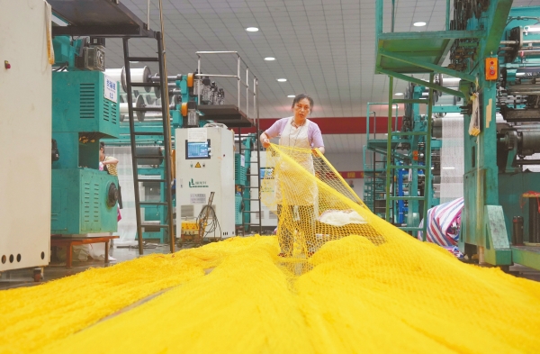 5月20日,洞庭湖南岸的一家工厂里,机器轰鸣。渔民进厂,成了工人。他们编织出的绳网,变成了体育休闲用网、工地安全网、深海养殖拖网等,销往全世界。