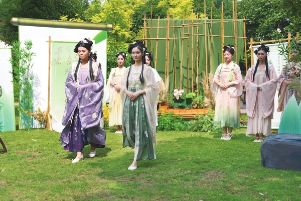 6月7日,文化志愿者在表演汉服走秀。当天,“美人香草 风骨传神——长沙非遗橘洲雅集”在长沙市非物质文化遗产保护中心举行。本次活动通过系列非遗展示展演,深度挖掘和弘扬长沙作为“屈贾之乡”的历史底蕴和人文内涵,赋予长沙非遗新的时代意义和生命力。