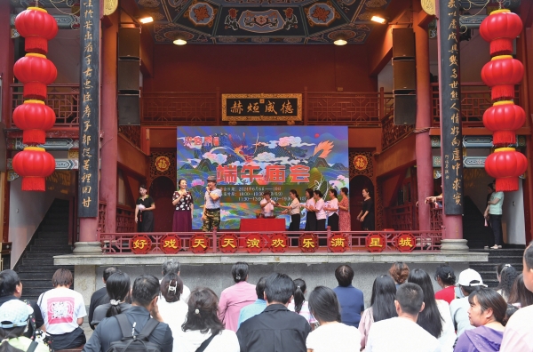6月8日,长沙百年老字号坡子街火宫殿特别举办端午庙会活动。丰富多彩的群众文艺表演、琳琅满目的非遗集市,让市民游客在品尝美食、欢度假期的同时,领略湖湘文化魅力。 湖南日报全媒体记者 徐行 通讯员 龙维 摄影报道