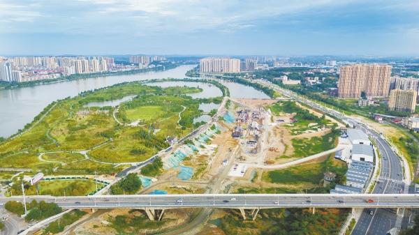 6月14日,湘江永州至衡阳三级航道建设三期工程建设现场。湘江永州至衡阳三级航道建设工程是交通运输部和湖南省“十四五”水运重点基础设施建设项目,第三期总投资31.45亿元,预计2026年6月建成通航。建成后,岳阳城陵矶至永州萍岛全长723km的高等级航道将全线贯通,可实现千吨级船舶畅通无阻,一条“水上高速”将纵贯潇湘南北。 雷中祥 摄(湖南图片库)