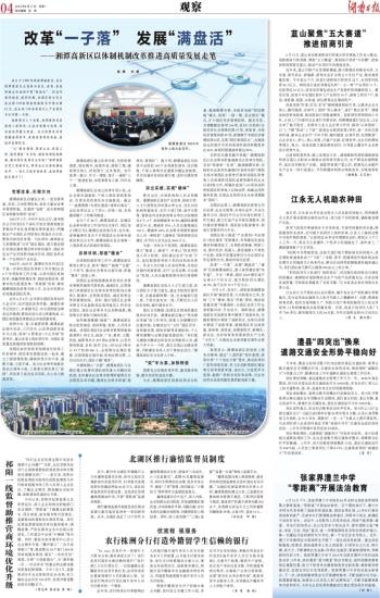 去年7月28日,湘潭高新区、岳塘区社会事务移交工作签约仪式举行,两区签订《移交书》,圆满完成改革任务;去年底,省委编委印发关于开展园区社会事务剥离改革试点文件,湘潭高新区是全省唯一入围改革试点的副厅级园区。
