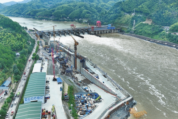 6月27日,湖南航务沅水洪江市至辰溪县航道建设工程二标项目迎来第一次洪峰过境。受持续性强降雨影响,该项目上游多级水电站大坝泄洪。截至当天15时许,洪峰以4000立方米/秒的流量经过。奋战在项目建设现场的工程技术人员坚守岗位,在水平面下的围堰内施工作业,确保按质按期完成施工任务。 杨锡建 摄(湖南图片库)