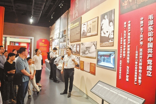 7月1日,市民、游客在中国共产党长沙历史馆参观。大家通过《红心向党——红色文化珍藏展》《一生光明——谢觉哉书信墨迹珍品展》等主题展览感受红色文化、接受党性教育、汲取奋进力量。建馆5年来,中国共产党长沙历史馆累计接待观众396.99万人次、团队2.83万批次。