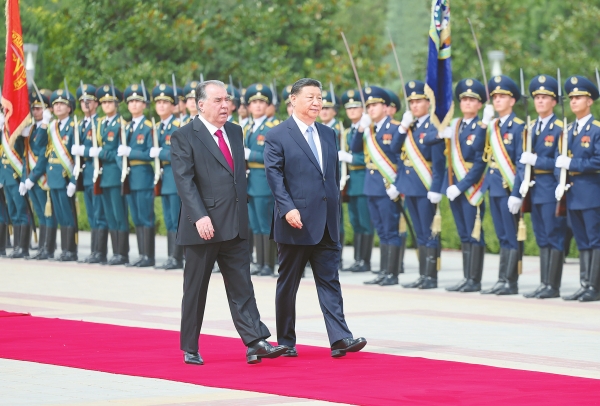 拉赫蒙为习近平举行盛大隆重的欢迎仪式。
