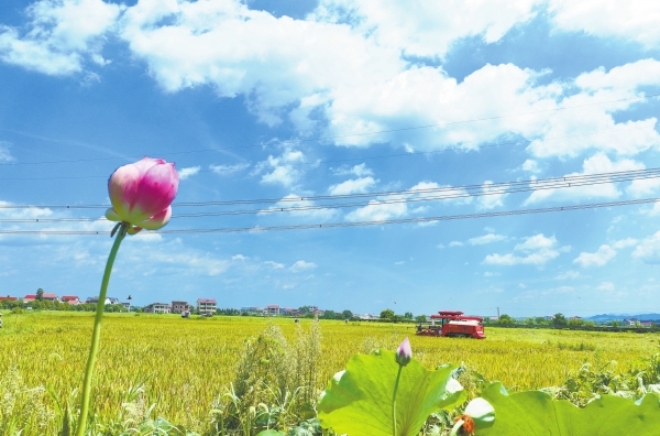 7月8日,衡阳县台源镇台九村,村民驾驶农机收割早稻。盛夏时节,该县种植的早稻陆续成熟,当地村民忙着收割、晾晒早稻,为全年粮食丰产丰收打基础。曹正平 刘欣荣 摄影报道(湖南图片库)