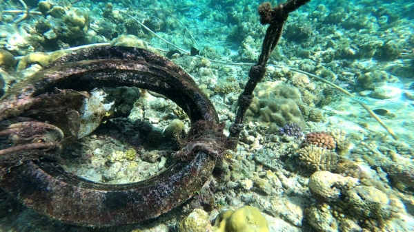 图为非法“坐滩”军舰海底固定处死亡的珊瑚。新华社 发