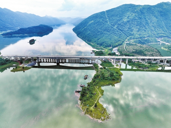 7月14日,位于石门县境内的炉慈高速皂市水库3号特大桥建设正酣。该大桥全长1249米,是炉(红山)慈(利)高速全线控制性工程。炉慈高速主线全长约79公里,建成通车后,从北至南依次连接长江三峡、国家级自然保护区壶瓶山、世界自然遗产张家界,对加强湘鄂两省往来交流、促进湘西北地区经济社会发展具有重大意义。 湖南日报全媒体记者 童迪 摄
