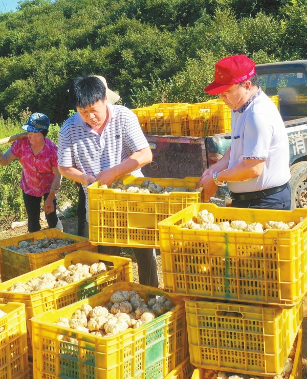 7月16日,嘉禾县珠泉镇大田岭村,村民在采收百合。时下,该村200多亩百合迎来成熟季,村民趁着晴好天气采收、分拣、装车外销。近年来,珠泉镇因地制宜发展特色产业,引导村民种植百合、芍药、黄姜等1000余亩,增收致富。黄春涛 邓叔安 摄影报道(湖南图片库)