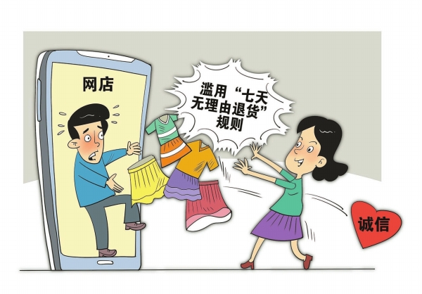 《法治日报》记者采访了解到,高企的退货率已成为一些电商平台的突出问题。依据《消费者权益保护法》,除特殊商品外,经营者采用网络、电视、电话、邮购等方式销售商品,消费者有权自收到商品之日起七日内退货,且无需说明理由。然而,有的消费者为了获取不当利益,在网购中肆意利用“七天无理由退货”等规则“薅羊毛”,令一些商家叫苦不迭。