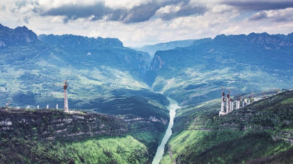 眼下,由中铁广州局承建的贵州安(安顺)盘(盘州)高速天门特大桥有序推进。天门特大桥是安顺至盘州高速公路的重要控制性工程,大桥全长1553米。这是7月17日拍摄的建设中的安盘高速天门特大桥(无人机照片)。