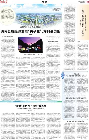 近日,中共湖南省委县域经济工作协调小组发布《关于2023年度全省县域经济高质量发展分类考核评价情况的通报》,对全省20个县域经济先进县予以表扬,浏阳连续两年位居第一。