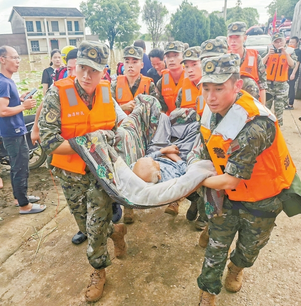 武警湘潭支队紧急出动,分别前往湘潭县射埠镇、锦石乡、易俗河镇等地进行救援,转移被困群众,转运物资,协助医务人员开展医疗巡诊。
