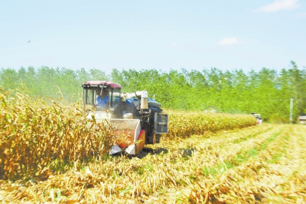 7月30日,澧县官垸镇常发村,来自河南驻马店的收割机在收割玉米。7月下旬,该镇种植的玉米进入收获季,当地组织拖拉机运输队伍,与来自河南省驻马店市的收割机服务队密切协作,进行抢收,确保尽早颗粒归仓。 柏依朴 江新周 摄影报道(湖南图片库)