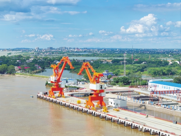 7月29日,位于湘阴县的虞公港项目一期建设一片火热。该项目是湖南水运发展规划中“一枢纽、多重点、广延伸”港口体系的重要组成部分。建成后,将在促进长株潭深度融入长江经济带,助力长沙建设国家综合交通枢纽,打造以长沙为核心、上下游区域联动发展的湘江经济走廊等方面发挥重要作用。 周洋 摄(湖南图片库)