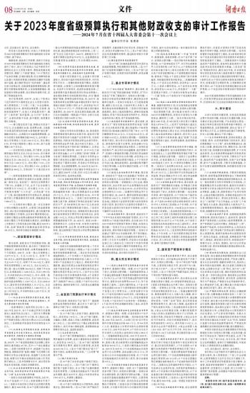 关于2023年度省级预算执行和其他财政收支的审计工作报告