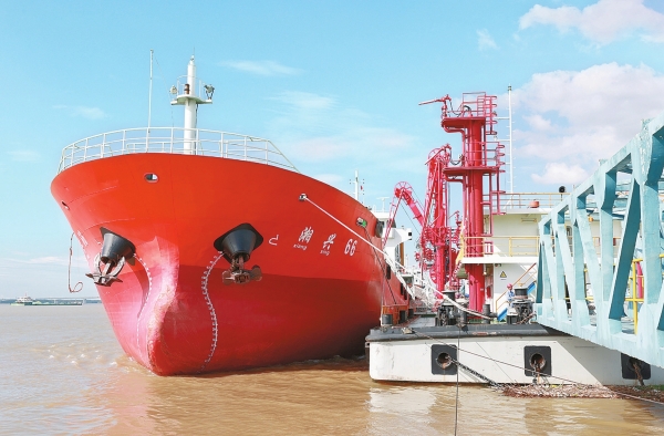 8月1日,中石化湖南石化公司位于岳阳云溪区长江北尾岸线的道仁矶储运装置码头,载有3000吨纯苯原料的船舶加紧接卸。连日来,该公司落实夏季安全生产及防暑降温措施,优化物流储运,确保燃、原料进厂及炼化产品出厂顺畅,夯实安全生产基础,日产各类产品逾2万吨。