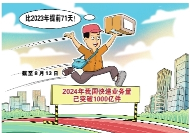 国家邮政局监测数据显示:截至8月13日,今年我国快递业务量已突破1000亿件,比2023年提前71天!这意味着全国人均收到快递71.43个,每一秒钟有5144件、每一天有4.4亿件快递在神州大地上流动。