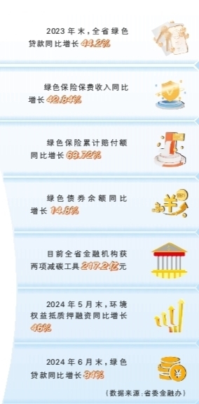 截至2024年5月末,全省环境权益抵质押融资同比增长46%;到6月末,全省金融机构获得两项减碳工具217.2亿元,绿色贷款同比增长34%。