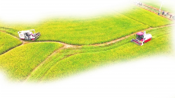 盛夏7月,收割机开足马力在稻田里来回穿梭,割穗、脱粒、稻谷装车等工序一气呵成。旁边收割完毕的稻田里,旋耕机和插秧机相继开工,一排排嫩绿的秧苗迎风摇曳。这是鼎城区谢家铺镇粮食生产万亩综合示范片的“双抢”现场。除了轰鸣的机器,几乎看不到人工作业、汗流浃背的辛苦场景。