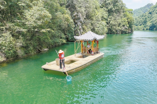 “尽管任务重、天气热,但只要能为游客提供干净舒适的旅游环境,再苦再热也值得。”卓璇告诉记者,去年夏天一场暴雨,从山上冲刷下了大量的枯枝烂叶,他与同事打捞了整整4船、近1吨的垃圾。