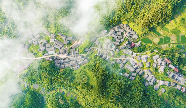 公共设施布好局,芋头人保留老祖宗巢居的传统,依山就势建住房。高坡吊脚,就坎填平,用杉木搭建,顶覆青瓦或杉树皮。一层放杂物,二层住人,三层做仓库或客房。二层,又会辟出最好的采光通风处,供女主人织侗锦绣侗帕,做青年男女谈情对歌的“歌堂”。