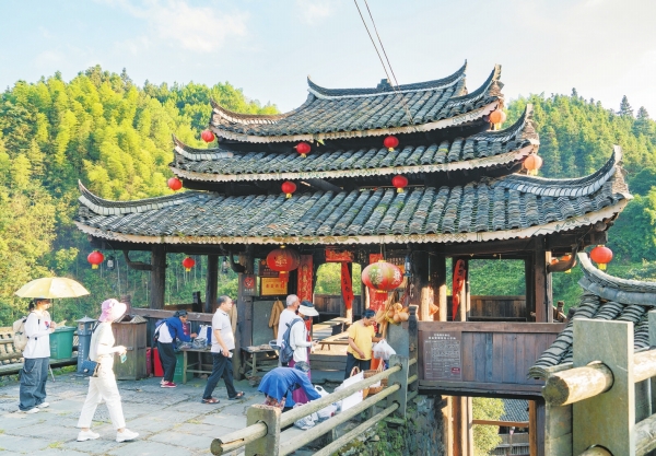 “看,这就是塘尾桥!”“看,那是禾晾!”83岁仍红光满面的李奉安,生怕我们错过任何一处精彩。风雨桥隐身暗处,两个高达四五米晒糯稻的大木架,上有瓦片遮雨。