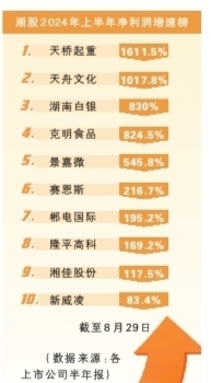 已披露中报的湘股中,有9家企业的净利润增幅超过100%。