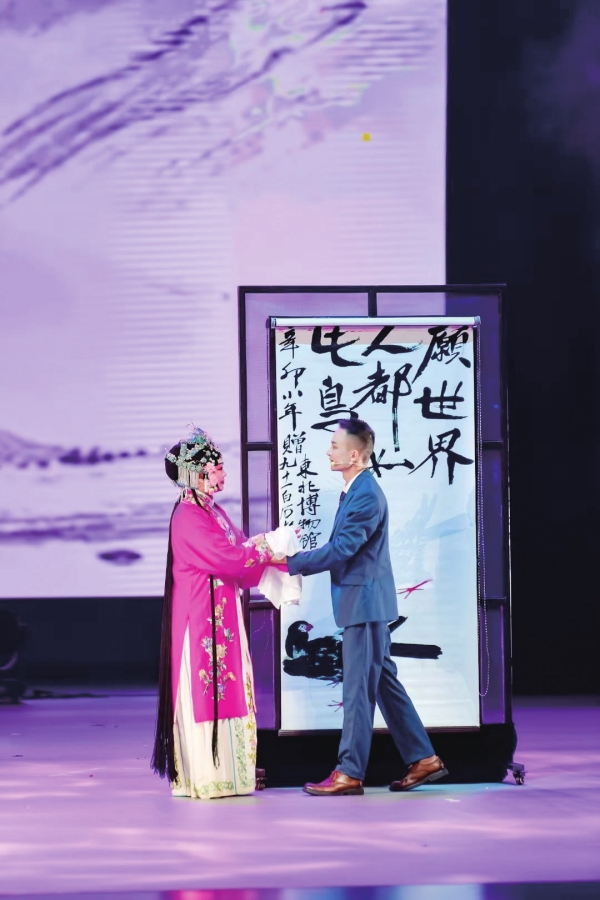 新式花旦朱睿涵的汉服装束和扮相,新国风唱腔与舞姿,展现东方女性的古典柔美;而男歌手李亚则西装革履,以新通俗的演绎与新时尚的元素,表现出具有新潮流的阳刚之气。他俩的对唱,将民族羽调式与戏曲新国风式的旋律美妙结合,令人耳目一新。现代表演方式和古代演绎的同框,能让观众更深刻地理解齐白石经历了封建社会到新中国的非凡人生,感受到这位人民艺术家不平凡的艺术之路。