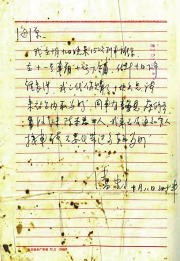 潘鹤教授在1977年10月8日给钱先生的信中特意提到他将乘15次特快车11号车厢17号下铺,预计10日下午到长沙,并且为钱先生从北京带了10块香皂。这不仅可以体现出在资源短缺时代背景下一辈人的生活、沟通状态,还可以从字里行间中体会出潘鹤教授对于后辈爱护、关心的心思。当时的交通、沟通不如现在便捷,二人为了短暂的相见需要在来信中具体注明乘车的车型乃至车厢的铺位。