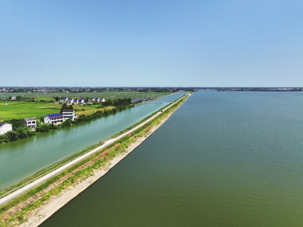 这个夏天,烂泥湖以宽广的水面承载着垸内的积水,排涝电机开足马力,将过多的积水排到垸外。8月末,随着降水减少,水位下降,烂泥湖开始蓄水,通过水渠将水送到农田。