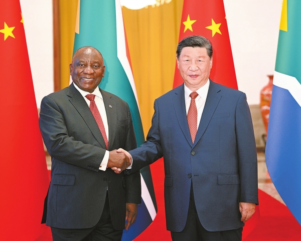 习近平指出,中国同南非的友好源于争取民族解放的肝胆相照、推进国家发展建设的相扶相伴、追求国际公平正义的团结协作。今年是中华人民共和国成立75周年,也是新南非成立30周年。尽管国际形势风云变幻,中南两国追求现代化的使命没有变,推动中非合作的志向没有变,完善全球治理的愿望没有变。中南加强团结合作,符合两国人民共同期待,契合全球南方发展壮大的历史进程,具有重要的时代意义和世界影响。