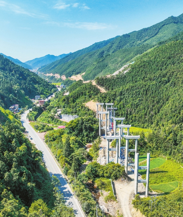 9月2日,位于道县与双牌县交界的零(陵)道(县)高速施工现场,工人在进行桥墩施工。该项目北接永零高速,南至G76厦蓉高速。建成后,将改善湘南山区的交通状况。蒋克青 摄(湖南图片库)