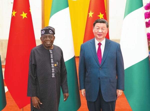 习近平指出,尼日利亚是具有重要影响的非洲大国,拥有巨大人口规模和发展潜力。建交半个多世纪以来,中尼始终相互尊重、平等相待,走出一条联合自强、合作共赢之路。近年来,两国在中非合作论坛框架内共同实施了一大批示范性、战略性合作项目。中国正在进一步全面深化改革、推进中国式现代化,这将为中尼关系发展带来更多机遇。双方要以高质量合作携手实现各自现代化,推动中尼关系实现新的更大发展。