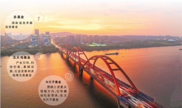 根据规划,以湖南省金芙蓉投资基金这只总基金为引领,旗下五大母基金以及系列领域子基金,投向不同领域。