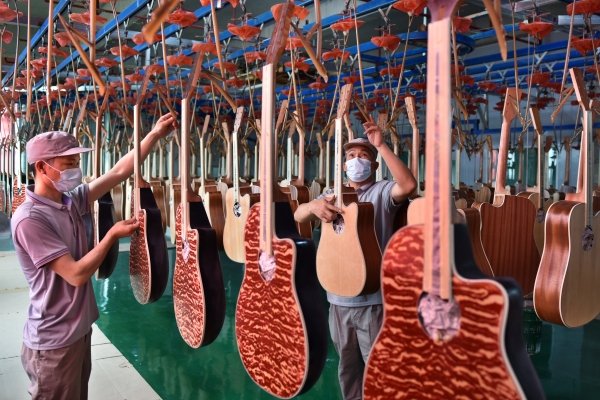 在该市高新区标准化厂房外,湖南省美德乐器制造有限公司的员工将一件件做工精良的吉他乐器装入集装箱,不久将通过海运进入国外市场。“我们产品在海外市场非常受欢迎,接下来我们将进一步扩大生产规模,预计今年能生产近两万把吉他,预计收入能突破3000万元。”公司负责人贾双意表示。
