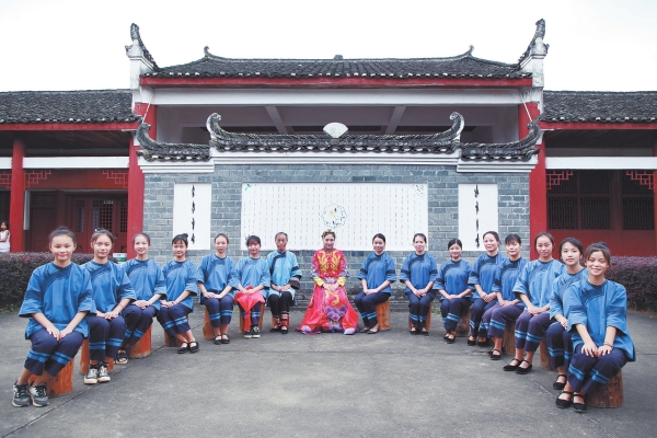 女书总是跟女友、女歌、女红联系在一起,它们共同构成了独特的女书文化。江永独特的“坐歌堂”“贺三朝”“结拜姊妹”“斗牛节”“吹凉节”等女性专有的风俗习惯,给了女书产生、传承、发展的土壤,同时也使女书文化呈现形式丰富多彩而独具魅力。受奶奶的影响,胡美月四五岁便能读会写女书字、唱女书歌,七八岁开始拿针绣字,并学会织带、剪纸。