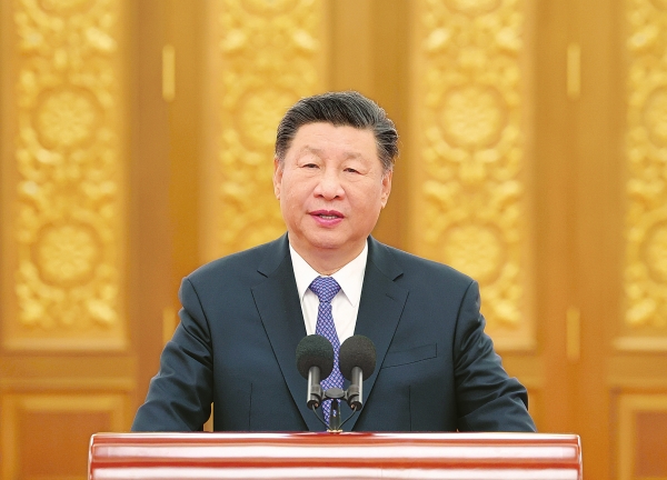 9月23日,党和国家领导人习近平、李强、赵乐际、王沪宁、蔡奇、丁薛祥、李希等在人民大会堂接见探月工程嫦娥六号任务参研参试人员代表并参观月球样品和探月工程成果展览。这是习近平发表重要讲话。新华社 发