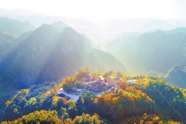 秋高气爽,湘西十八洞村的深山苗寨里,晒着金黄色的南瓜和玉米,红彤彤的辣椒,还有各色苗绣花扇……游客穿梭其中,沉醉在五彩斑斓的金秋美景。