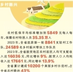 打特色牌,培育乡村新产业、新业态。2023年,全省农产品加工业产值突破2.2万亿元;全省休闲农业经营主体发展到1.73万个,年接待游客2.55亿人次,年营业收入532亿元。
