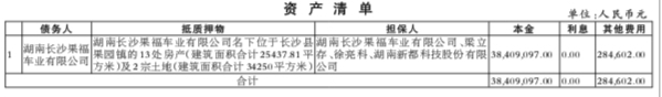 我司现有湖南长沙果福车业有限公司债权资产拟进行处置。上述债权资产抵押物主要位于湖南省长沙市,抵押物主要为工业厂房、办公楼及工业用地,债权总额合计38,693,699.00元,具体信息详见标的资产清单。